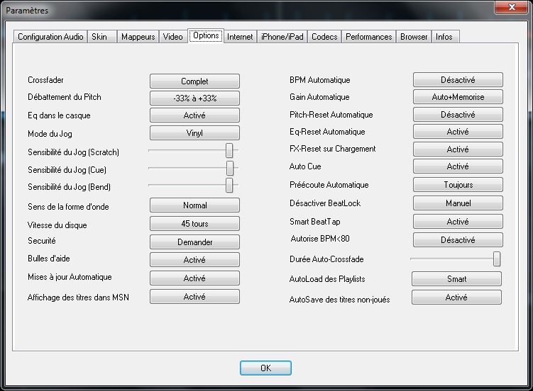 Par contre puis-je avoir une copie d'écran de l'onglet OPTIONS de VirtualDJ merci.