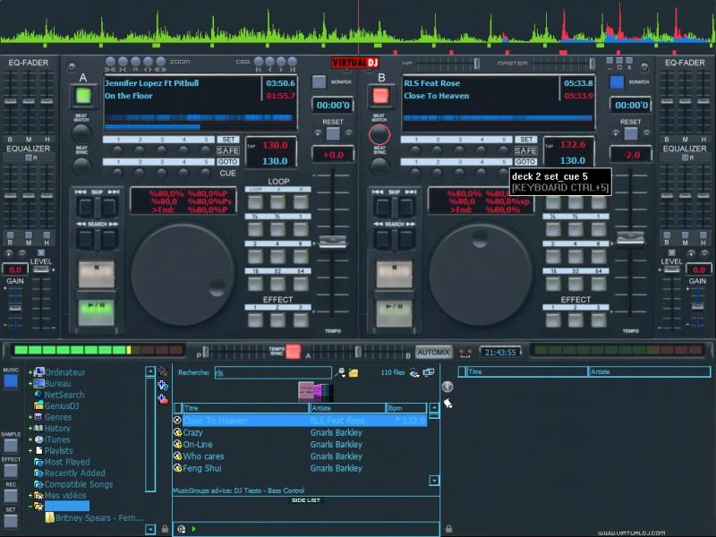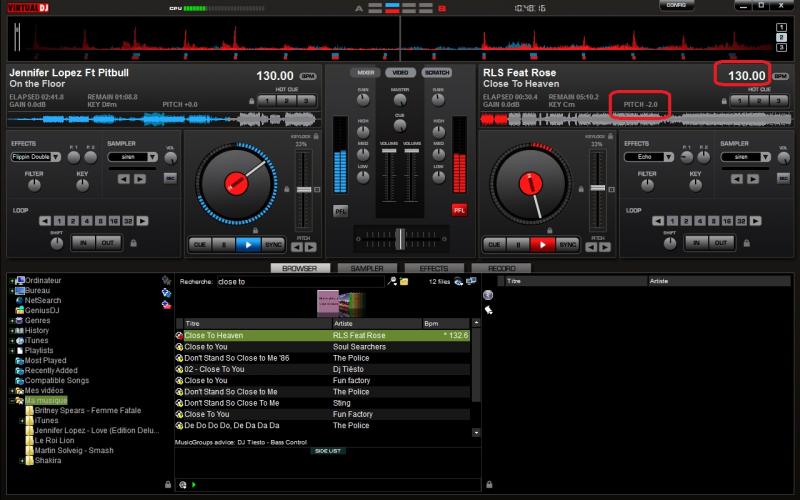 Platine B, j'appuise sur BeatMatch / BeatLock, Close to Heaven passe à un Bpm de 130 donc :