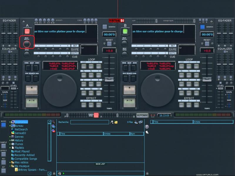 La fonction BeatMatch n\'existe pas dans VirtualDJ mais la fonction BeatLock \"oui\" mais la personne qui a fait la Skin a simplement nommée la fonction BeatLock en BeatMatch regarde donc si tu laisse ta souris sur la touche virtuelle ce que cela marque ,-)