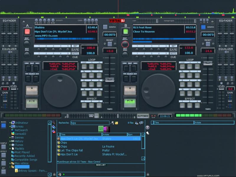 Si maintenant, j'oublie de désactiver mon BeatMatch / BeatLock sur ma platine B et que je mets un morceau d'un Bpm complètement différent sur ma platine A, ben le Bpm du morceau de la platine B en cours change radicalement. Voici l'exemple, avec Hip's Don't Lie, la platine B est passé à un Bpm de 100 directement. La différence s'entend et soyons clair, ça ne fait pas beau :