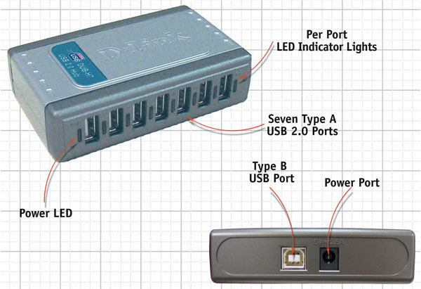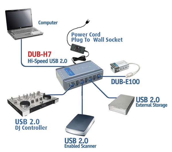 Running VDJ PRO (licensed i might add) a usb DNX1600 mixer, 1 usb v7 (the other plugs into the other v7), a usb wd 1tb exx hdd w all the music and finally the nanopad. so 4 devices and 2 ports. but to use the hub of course 3 of the devices would need to go through the hub.