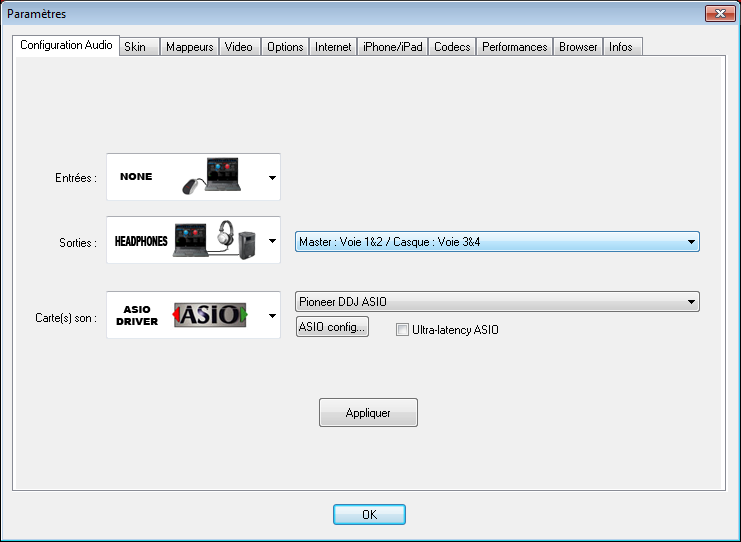 Le mieux serait de refaire une fois correctement la mise en service avec le driver ASIO de Pioneer soit :