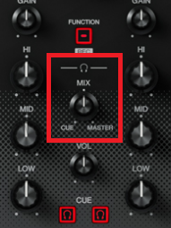 Et vous pouvez jouer entre les 2 selon la position du bouton rotatif et dans votre cas il est surement au centre au lien d'être complètement sur la gauche donc position CUE c'est pour ça que vous entendez en même temps la piste en pré écoute et ce qui sort de la table DDJ Ergo !