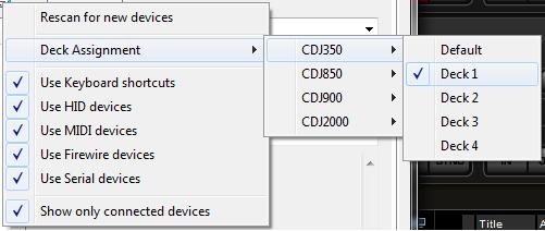 Beim letzten GIG hatte ich das Problem dass bei beiden Pioneer CDJ350 Playern (per USB verbunden & im MIDI Modus) immer "01" im Display erschien (-> Deck 01). Die beiden Soundkarten der CDJs konnte man unabhängig voneinander betreiben und auswählen, aber beim steuern von VDJ steuert jeder CDJ immer Deck "01".