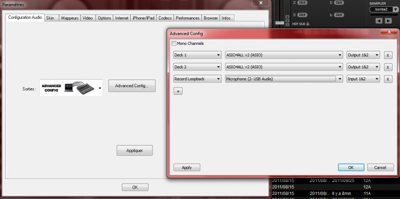 il faut configurer en mode advenced config dans carte son de vdj comme ceci