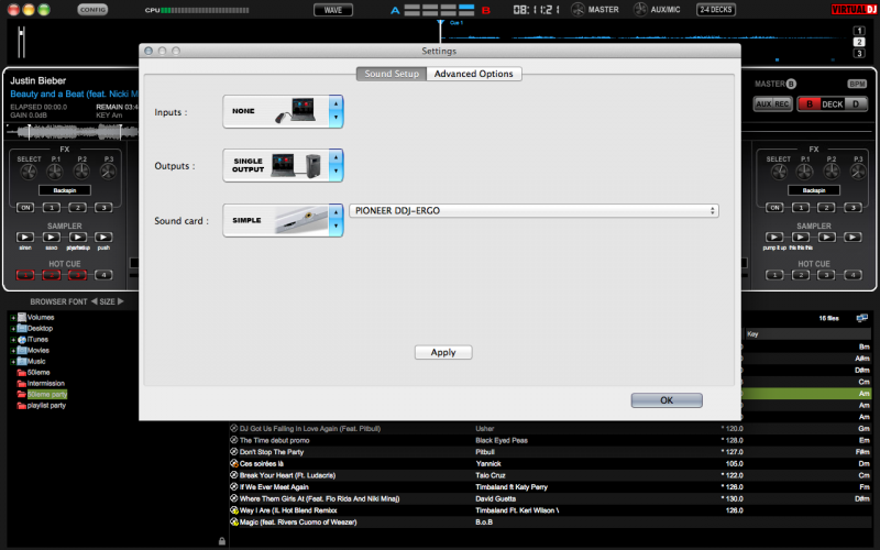soundcard ... si j'ai le malheur de touché pour sélectionner les outputs Virtual DJ bug et je dois fermé le logiciel.