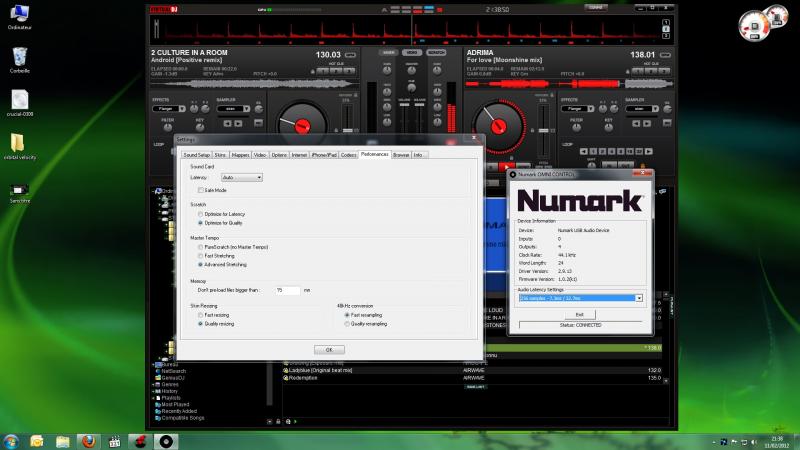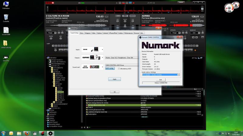 3) latence : j'ai mis le curseur 1 cran avant le mini : 128 samples - 4.4ms / 15.6ms avec l'Omni Control Asio Numark