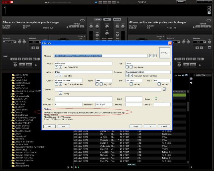 Renommage en enlevant l'accent sur le "e" de céline. Ok pour VDJ, ma base en tiens compte lorsque je charge le morceau.
