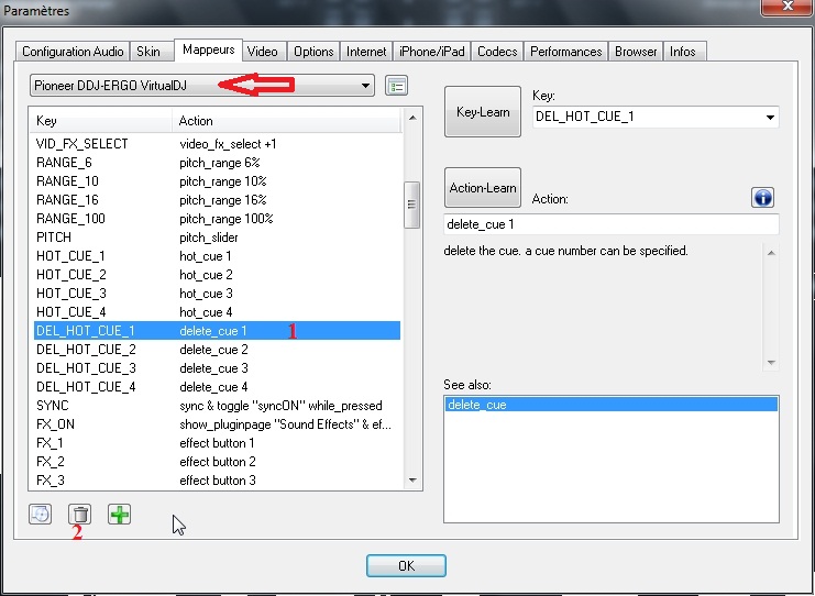 Alors voila en image ou tu peux supprimer les Key DEL_HOT_CUE_1 répète cette procédé jusqu'au DEL_HOT_CUE_4