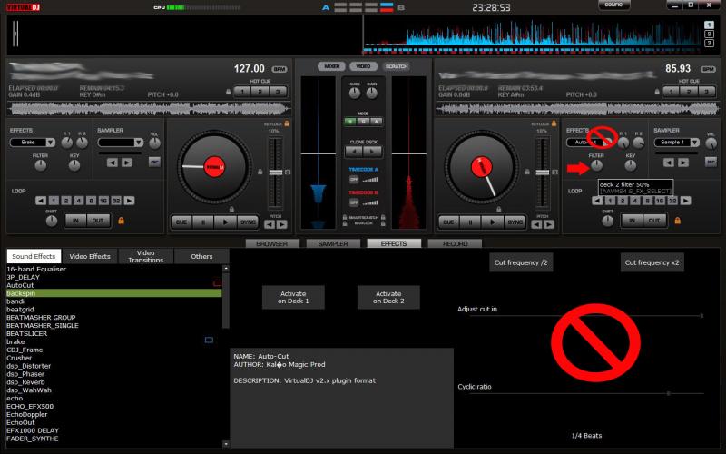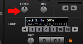 deck1 filter a 50% et sur deck2 filter a 40%