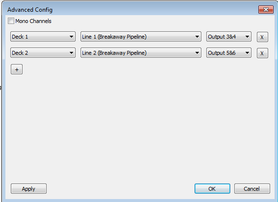 Füge halt noch 2 Decks hinzu, gib als Soundkarte die VMS an und eben die noch nicht belegten Outputs.