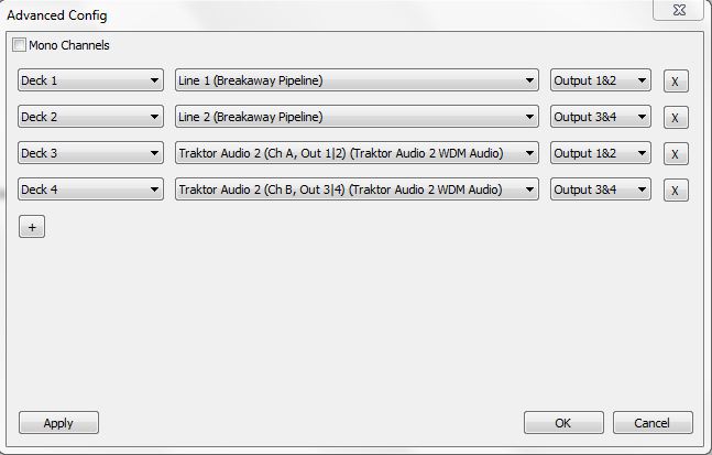 Virtual DJ jagt nun also den Sound der beiden anderen Decks nicht über die Soundkarte der VMS4 raus, sondern über die Audio2.