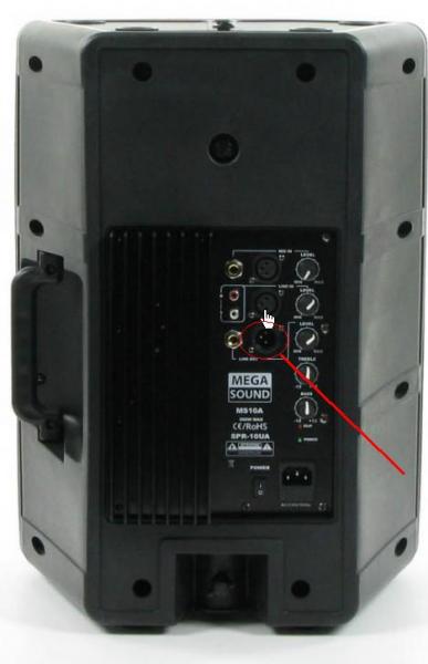 - 1 Entrée Ligne en XLR en stéréo pour brancher des périphériques du type lecteur cd/cassette, ou une autre enceinte amplifiée.