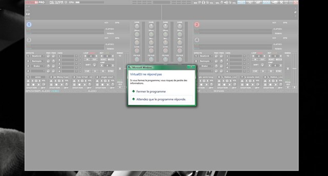 J\'ai un souci depuis peu avec mon vdj,qui ne répond plus quand je veux le fermer ,je ne sais pas pourquoi car je n\'ai rien toucher aux règlage , c\'est même les réglages par défaut ,sauf asio et platines + mapper .