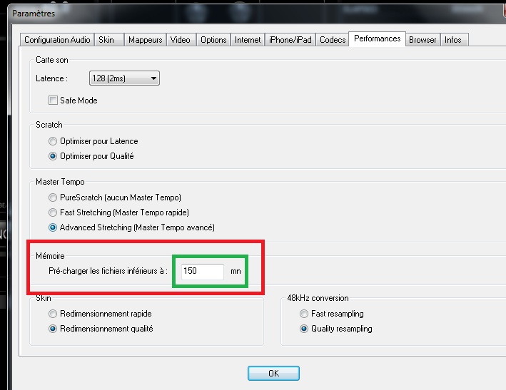 Il vous faut modifier cette valeur dans les options de VirtualDJ soit ce qui est entouré dans le carré rouge, la valeur entourée en vert :