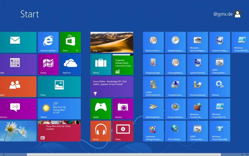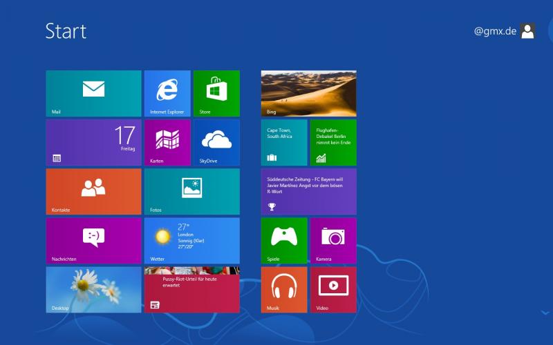 Erster Eindruck: Die Bedienung ist wirklich sehr gewöhnungsbedürftig. Es ist echt was komplett anderes zu Win 7 und sehr medial ausgerichtet alles. Den Nachrichtendienst finde ich aber ganz gut (bis jetzt). Auch haben die Entwickler den Startbutton auf den Desktop wieder mit rein genommen. Naja, sowas ähnliches zumindest. Wenn man mit der Maus links unten an den Bildschirmrand geht, dann kommt man nach einem Klick wieder auf den Metrobildschirm. Alternativ auch per Windowstaste.