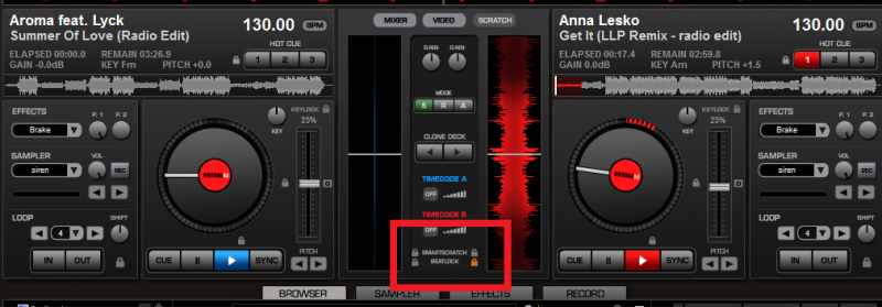 Justement j'ai ce symptôme si j'active ces cadenas et ce bien que dans les options de vdj je sois bien mis sur BPM automatique désactivé !
