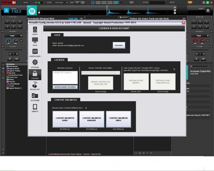das was ich auf den bild gesehenhabe virtual dj infinity bereits aktiv.