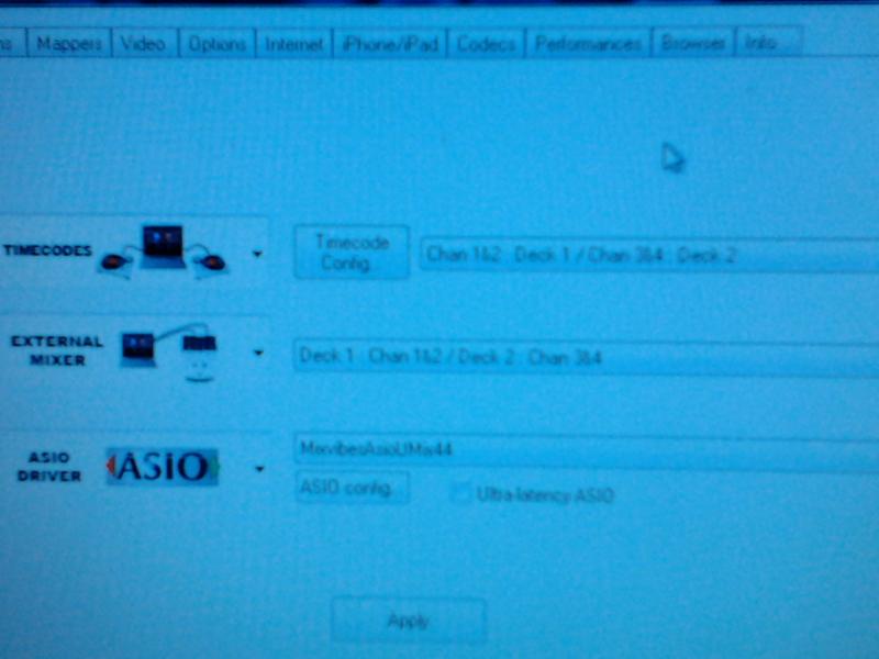 je viens d'installer vdj pro sur mon pc portable impecablement enfin je pense!! Impatient de m'en servire je branche ma carte son ma table et mes platines cd, et une fois le son lancé sa n'arrete pas de grésillé et pas mal de micro coupure. J'en parle meme pas kan je met un effet ou quand je me sert du fader.(j'avais déja précisé dans un poste précedent). etant donné que mes platines font usb j'ai essayé de les brancher en midi, et la sa sort niquel les effect parfait mais cette fois les deux platine ne font plus qu'une. Quand je veux balancer mon 2eme son sa relance lotre platine. Y'a til des réglages a faire entre la carte son et vdj? Je mi connais pas spécialement en informatique donc si quelqu'un peut m'aider a resoudre sa serai super j'ai tro hate de l'utiliser.