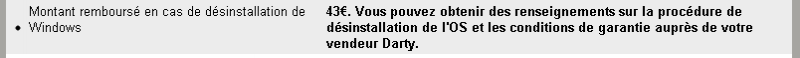 en plus il vire windows et te rembourse 40€comme ca tu peux mettre le 8 propre dessus pour 15€...