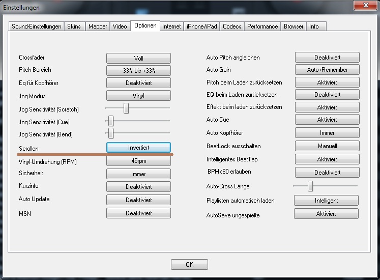 scrollen auf invertiert.