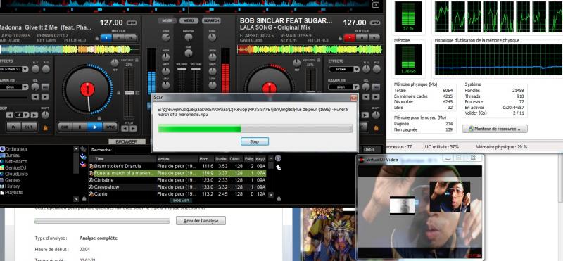 Image 2 : VirtualDJ Pro FUll + 2x logiciel Paint + 1x Scan antivirus complet + 1x scan des BPM\'s par VirtualDJ Pro Full + 2x vidéos en lecture avec affichage fenêtrée