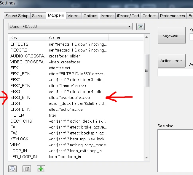 The controller has 4 buttons marked "EFX 1-4". Being a simple man, I used the "Mappers" area of Virtual DJ to assign a favorite effect to each of the four buttons. In the mapping section, the third EFX button looks like EFX3_BTN effect "overloop" active for instance (see image 1).
