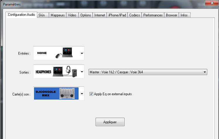 Ne pas oublier aussi de mettre le driver de la console sur mode DJ (petite icone située tout en bas à droite de la barre de tâche).