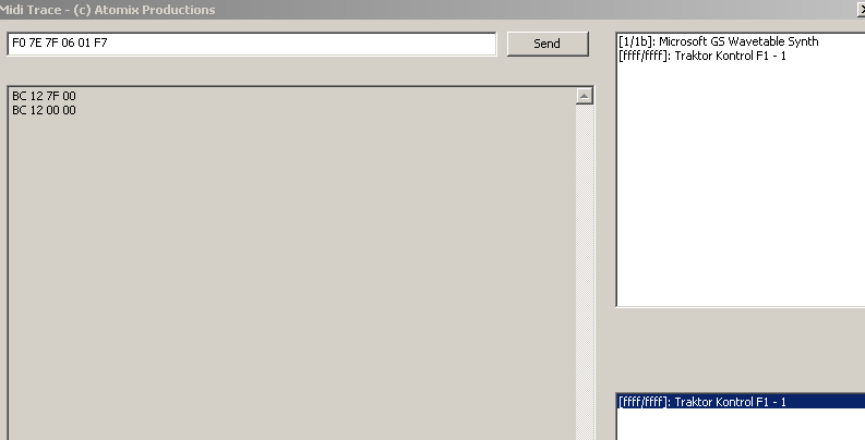 - Puis lance miditest ou miditrace pour voir si le PC reçoit bien des données midi (ce sont des codes de type 93 70 7F 00 ). Des infos ici http://chris-dodge-ma-page.blogspot.fr/p/miditrace.html.