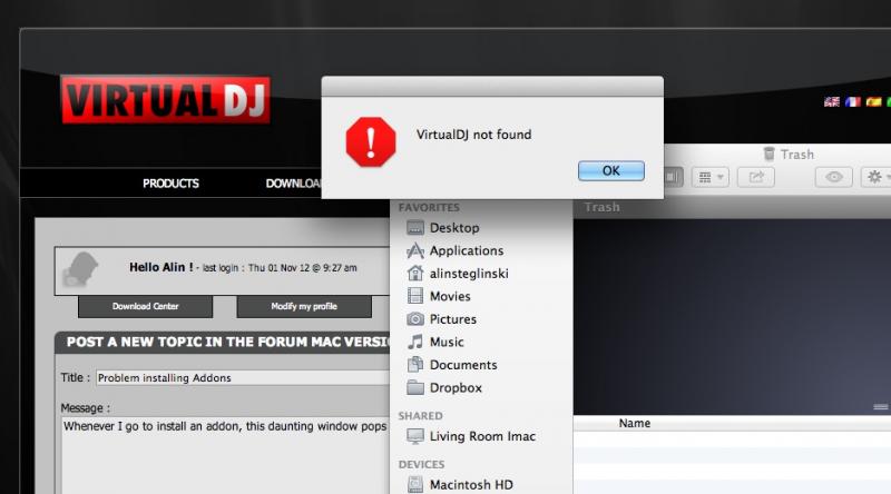 How lovely and descriptive (Not) Why can\'t it say Syntax incorrect or Library file not found or something more descriptive. But I can assure my Mac that VirtualDJ is installed. I just shelled out 318 clams for it! And I got a gig coming up soon and I\'d like some high res skins on this bad boy!
