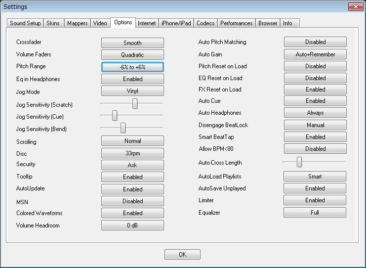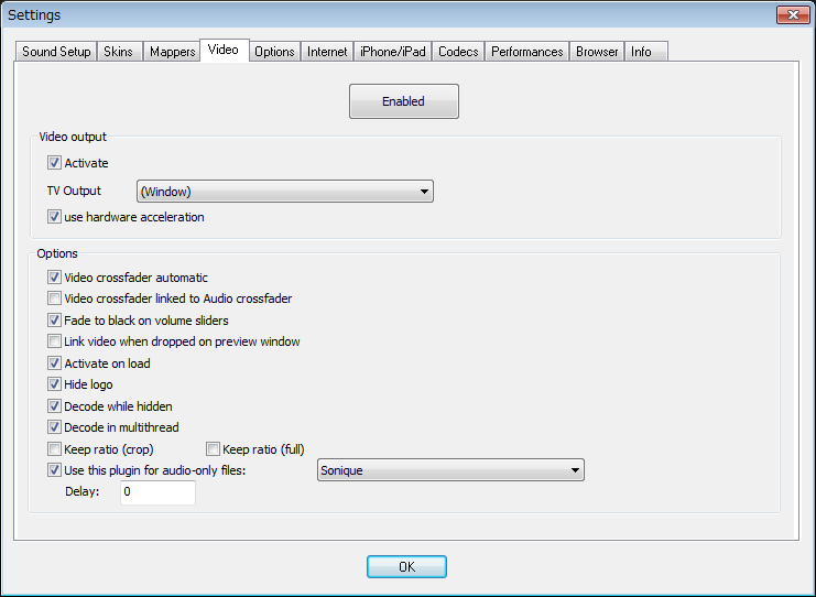 Settings Video tab. Option Video Crossfader Automatic.