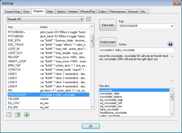 action - learn -> crossfader.