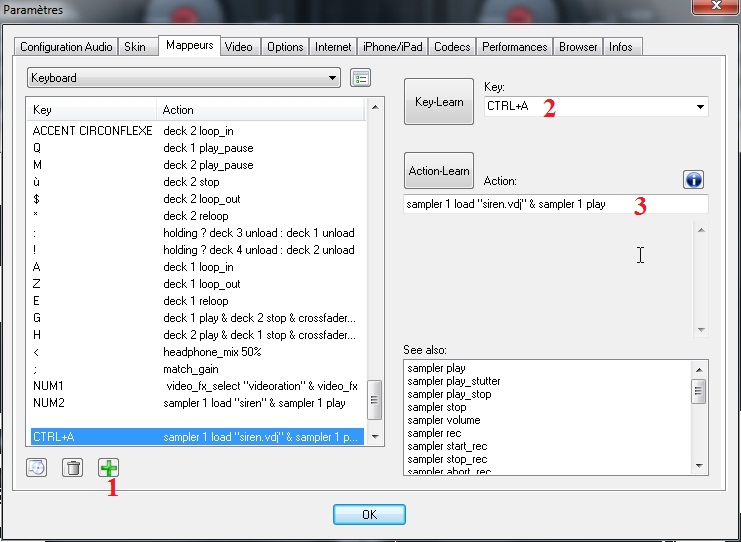 Et dans la case Action tu tapes sampler 1 load "siren.vdj" & sampler 1 play
