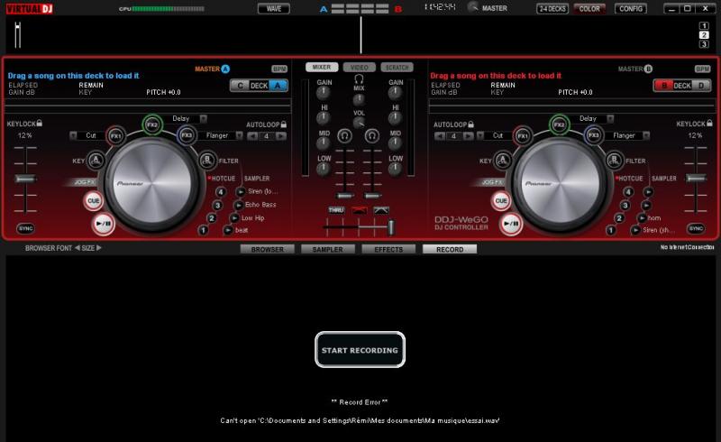 Mais comment faire alors pour enregistrer mes créations ? La fonction "enregistrement" de VDJ LE (en .wav) ne fonctionne pas. (message d'erreur).