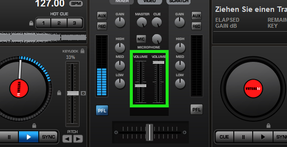Während des Lieds kann ich ihn nach ganz unten ziehen. Es wird aber nur etwas leiser. Dann dauert es und dauert es. Manchmal 2 manchmal 5 Lieder. Dann ist, solang der Linefader noch ganz unten ist, das Lied plötzlich ganz aus. Wenn man den Linefader wieder hochstellt, klappt alles super. Aber mitten in einem Lied, spinnt es dann wieder.