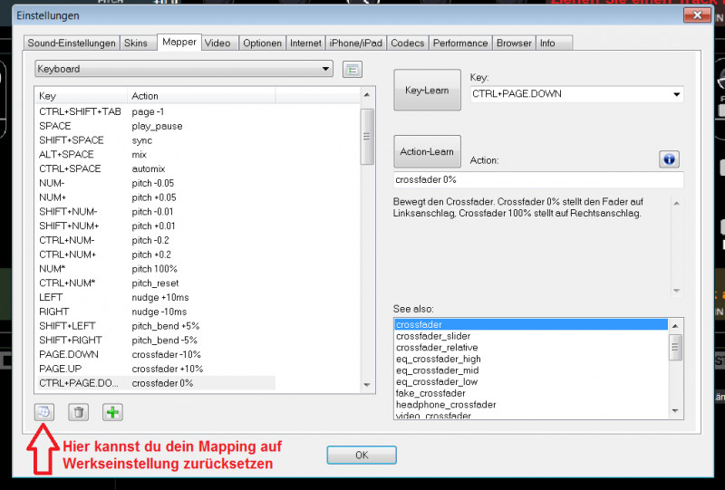 habe es so eingestellt wie du gesagt hast und trotzdem hört man die lieder nach durcheinander, egal auf welcher seite der crossfader steht.