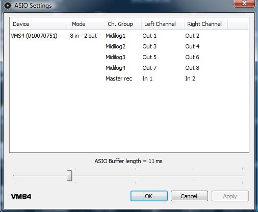 Le pilote asio actuel est la version 1.2, mais je ne pense pas que ton problème vient de là. En effet j'ai lu dans le fil de la conversation que tu avais sélectionné "VMS4 MIDI DEVICE" or ce que tu dois sélectionner c'est "ADJ ASIO (ASIO)", sinon ça ne marchera pas dans ta configuration avancée.