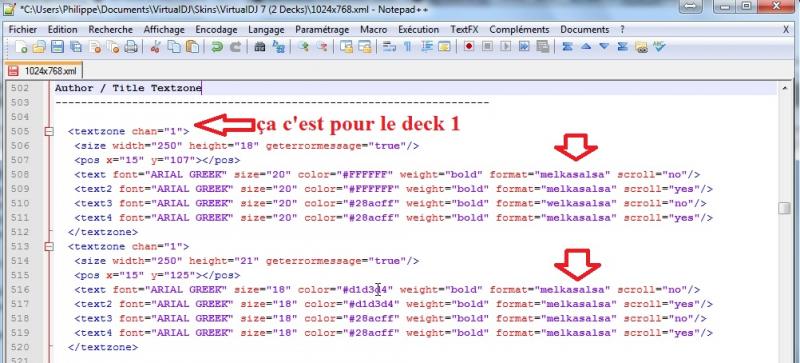 Il faut modifier aussi la partie: <textzone chan="2"> pour le Deck 2