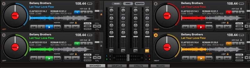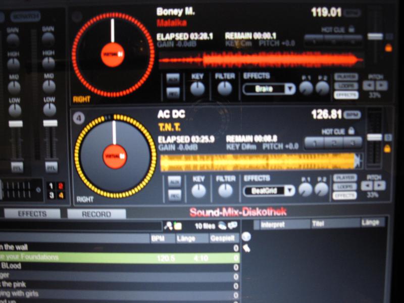 Hier mal ein Bild. Bei Deck 4 also Gelb sieht man, das dass ganze Feld und nicht nur die grafische Darstellung (Wellenform) vom Lied, gelb hinterlegt wird.