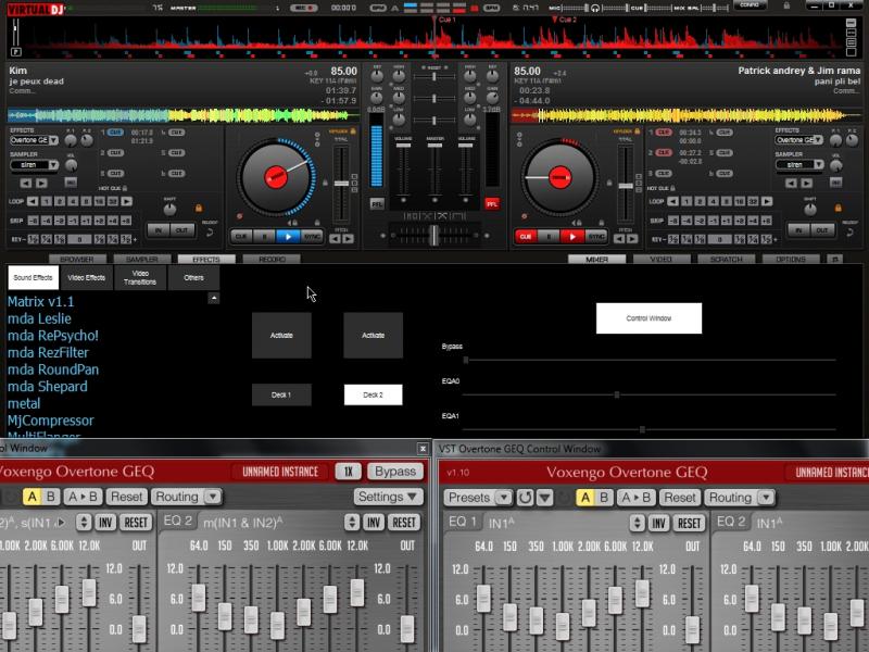 fonctionne sur les 2 deck il suffit de selectionner l'effet équaliser sur les 2 decks, quand a la qualité c'est bof