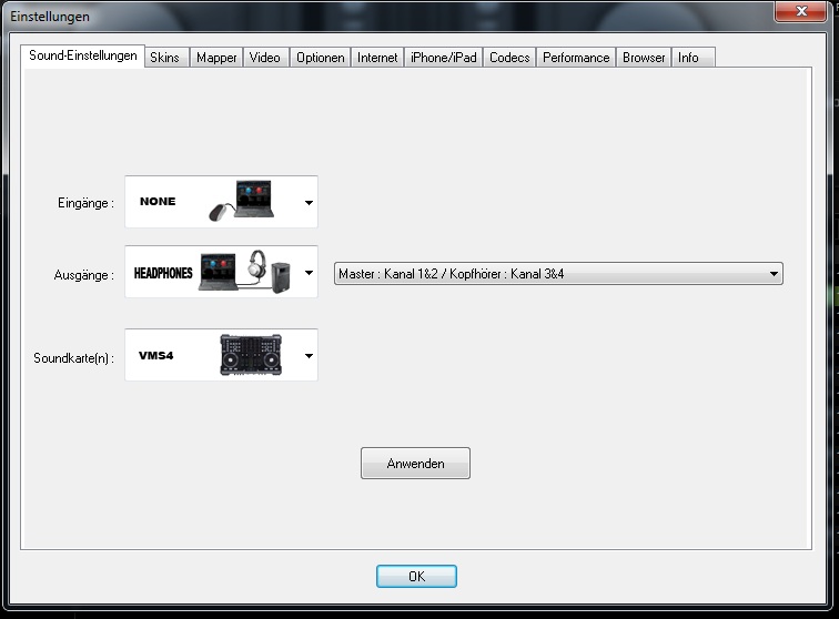 Kannst du mal einen Screenshot von deinen Soundeinstellungen in VDJ posten..? Wie hast du den Drehregler CUE/ Mix vorne an der VMS ?