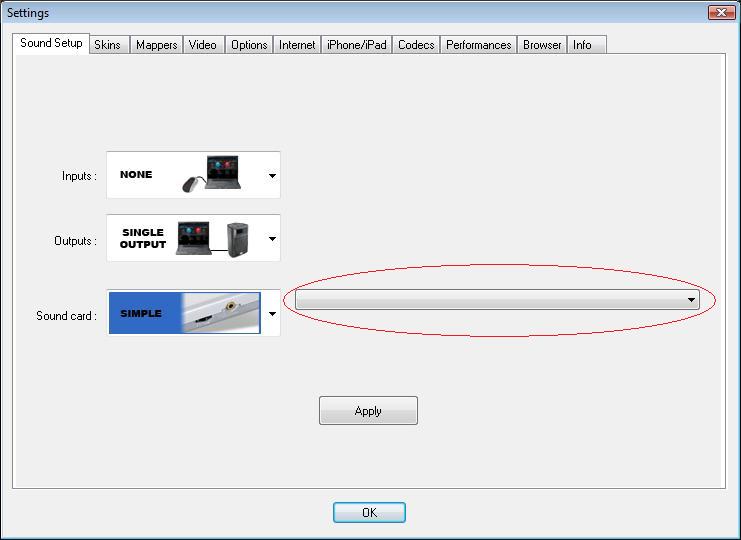 After running diagnostics and tests on the sound card with no indication of issues (I am running a HP laptop with Vista SP2), I decide to revisit the Config > Sound Setup screen again. Well, wouldn't you know - I finally saw the issue this time (see screen below).