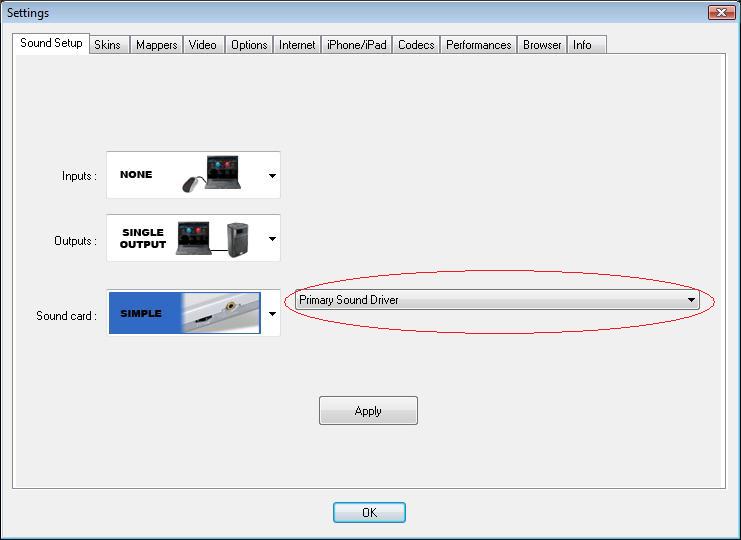 Of course, when you get this error, you can't play any song from either deck (although everything else works). I immediately went to Config > Sound Setup to check my settings, thinking that I left it set at ASIO DRIVER from my last gig (I was at home at the time with no external sound card attached). However, everything looked fine (i.e., it was set to SIMPLE) after a quick glance. Then I started to panic, as I knew I hadn't changed any of my sound settings in the PC, and all other programs on my PC that used the sound card worked fine!