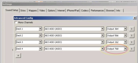 Ich will die 2 Decks ansteuern - das ist Kanal 3/4 bzw, 5/6 also die beiden mittleren LS Regler . Stimmt doch oder?