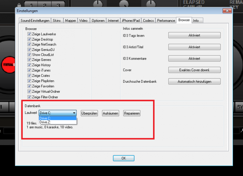 Diese db (auf E) mal mit dem Editor öffnen und die Einträge kontrollieren. Alternativ ein Backup der Database machen und die Aufräumfunktion von VDJ nochmals drüber laufen lassen. Dabei bitte darauf achten, welche Database du auswählst...dies wird dir ja angezeigt....