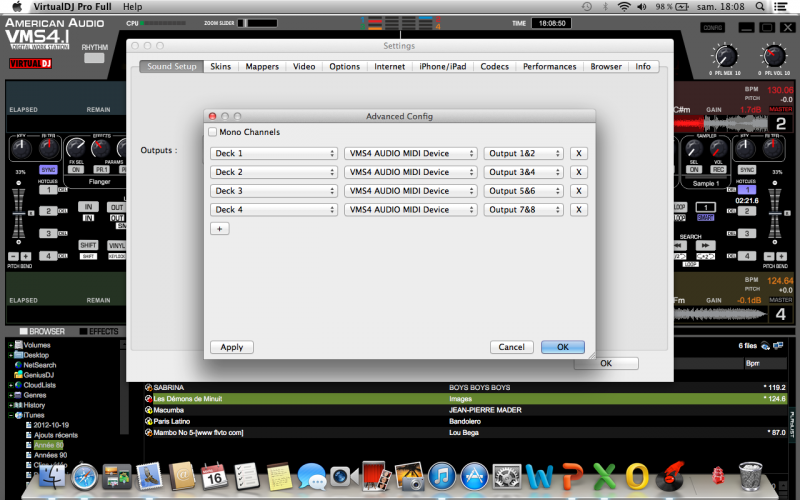- installer le driver du contrôleur, dans ton cas American DJ VSM4 (voir sur le site contructeur). Selon moi c'est là que ça coince car tu ne peux pas configurer tes 4 platines comme sur le lien.