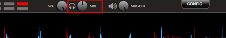 Comme les boutons de la DJ Air n'offre que la possibilité d'avoir le CUE ou le MIX, vous devrez aussi utiliser le potar de contrôle du mix "logiciel" de VDJ: