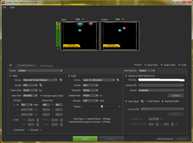 et nous utilisons Adobe Flash Media Live Encodeur (fmle) pour la diffusion
