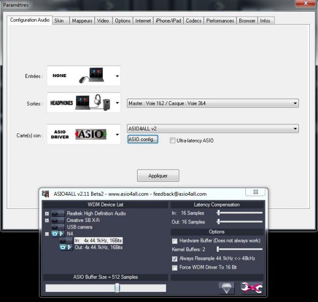 Voici ma config asio avec une carte son