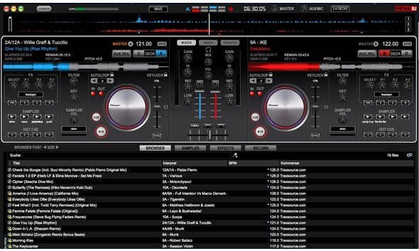 Unter anderem zwei Pioneer-Konsolen in Verbindung mit VirtualDJ.
